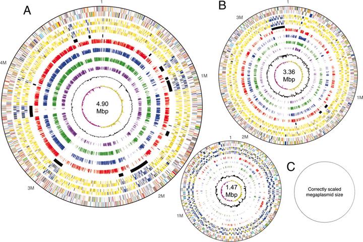 Burkholderia xenovorans LB400 (LB400), a well studied, effective polychlorinated biphenyl-degrader, has one of the two largest known bacterial genomes and is the first nonpathogenic Burkholderia isolate sequenced. From an evolutionary perspective, we find significant differences in functional specialization between the three replicons of LB400, as well as a more relaxed selective pressure for genes located on the two smaller vs. the largest replicon. High genomic plasticity, diversity, and specialization within the Burkholderia genus are exemplified by the conservation of only 44% of the genes between LB400 and Burkholderia cepacia complex strain 383. Even among four B. xenovorans strains, genome size varies from 7.4 to 9.73 Mbp. The latter is largely explained by our findings that >20% of the LB400 sequence was recently acquired by means of lateral gene transfer. Although a range of genetic factors associated with in vivo survival and intercellular interactions are present, these genetic factors are likely related to niche breadth rather than determinants of pathogenicity. The presence of at least eleven “central aromatic” and twenty “peripheral aromatic” pathways in LB400, among the highest in any sequenced bacterial genome, supports this hypothesis. Finally, in addition to the experimentally observed redundancy in benzoate degradation and formaldehyde oxidation pathways, the fact that 17.6% of proteins have a better LB400 paralog than an ortholog in a different genome highlights the importance of gene duplication and repeated acquirement, which, coupled with their divergence, raises questions regarding the role of paralogs and potential functional redundancies in large-genome microbes.
