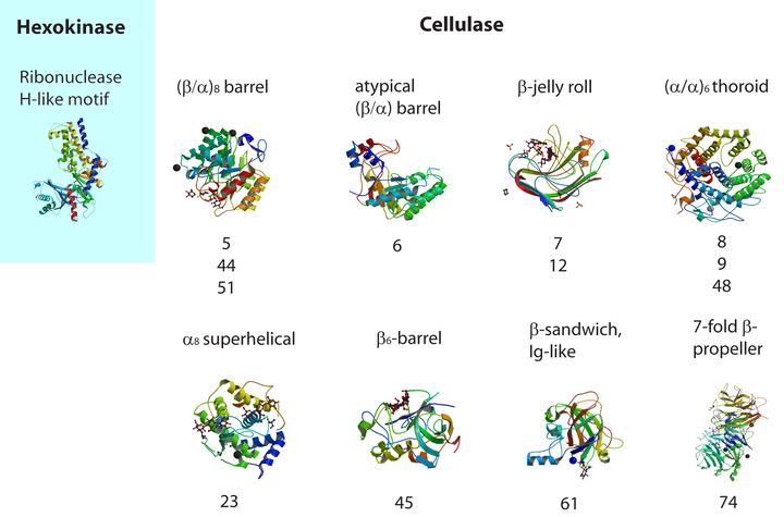 The key material for bioethanol production is cellulose, which is one of the main components of the plant cell wall. Enzymatic depolymerization of cellulose is an essential step in bioethanol production, and can be accomplished by fungal and bacterial cellulases. Most of the biochemically characterized bacterial cellulases come from only a few cellulose-degrading bacteria, thus limiting our knowledge of a range of cellulolytic activities that exist in nature. The recent explosion of genomic data offers a unique opportunity to search for novel cellulolytic activities; however, the absence of clear understanding of structural and functional features that are important for reliable computational identification of cellulases precludes their exploration in the genomic datasets. Here, we explore the diversity of cellulases and propose a genomic approach to overcome this bottleneck.