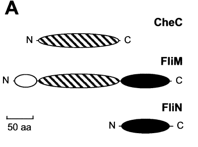 Chemotaxis by Bacillus subtilis requires the inter-acting chemotaxis proteins CheC and CheD. In this study, we show that CheD is absolutely required for a behavioural response to proline mediated by McpC but is not required for the response to asparagine mediated by McpB. We also show that CheC is not required for the excitation response to asparagine stimulation but is required for adaptation while asparagine remains complexed with the McpB chemoreceptor. CheC displayed an interaction with the histidine kinase CheA as well as with McpB in the yeast two-hybrid assay, suggesting that the mechanism by which CheC affects adaptation may result from an interaction with the receptor–CheA complex. Furthermore, CheC was found to be related to the family of flagellar switch proteins comprising FliM and FliY but is not present in many proteobacterial genomes in which CheD homologues exist. The distinct physiological roles for CheC and CheD during B. subtilis chemotaxis and the observation that CheD is present in bacterial genomes that lack CheC indicate that these proteins can function independently and may define unique pathways during chemotactic signal transduction. We speculate that CheC interacts with flagellar switch components and dissociates upon CheY-P binding and subsequently interacts with the receptor complex to facilitate adaptation.