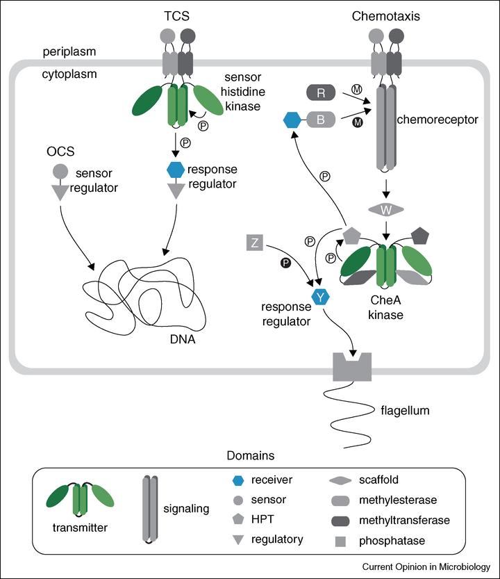 Two-component signal transduction systems are abundant in prokaryotes. They enable cells to adjust multiple cellular functions in response to changing environmental conditions. These systems are also found, although in much smaller numbers, in lower eukaryotes and plants, where they appear to control a few very specific functions. Two-component systems have evolved in Bacteria from much simpler one-component systems bringing about the benefit of extracellular versus intracellular sensing. We review reports establishing the origins of two-component systems and documenting their occurrence in major lineages of Life.